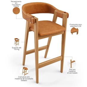Model: Nadja | OriginCountry: Nacional | OriginState: PR | ProductContents: 01 Banqueta | ProductHeight: 100 cm | ProductInstructions: Produto para uso em ambiente interno, nao devendo ficar exposto ao sol, calor e umidade excessivos. | ProductLength: 53 cm | ProductWarranty: 90 dias após o recebimento do produto | ProductWeight: 10 kg | ProductWidth: 52 cm | SizeDescription: Altura: 100 cm x Largura: 52 cm x Profundidade: 53 cm | SupplierSimpleName: Banqueta Alta Bar Cozinha Sala de Jantar Bar Nadja L02 Couríssimo Canela - Lyam Decor | Color: Laranja | ColorFamily: Laranja | ColorSimple: Laranja | ColorSupplier: Canela | Material: Estrutura em Madeira, Revestimento em Couro sintético e espuma | MaterialFamily: Madeira, couro sintético e espuma