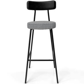 Amplamente moderna, dispondo de muito realce e design singular, a Banqueta Alta Bar Cozinha Sala De Jantar Aço Milão L02 Couríssimo Preto Pied Poule - Lyam Decor vem com a personalidade e elegância que sua decoração merece! Estruturada em aço carbono, contrasta lindamente com o encosto e assento estofados, cabe mencionar ainda o revestimento do seu encosto em Couríssimo e do assento em Pied Poule, é confeccionada por materiais de excelente qualidade, extremamente resistentes e aconchegantes.