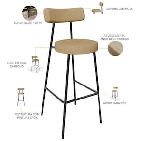 Amplamente moderna, dispondo de muito realce e design singular, a Banqueta Alta Bar Cozinha Sala De Jantar Estrutura Em Aço Milão L02 Linho Bege Escuro - Lyam Decor vem com a personalidade e elegância que sua decoração merece! Estruturada em aço carbono, contrasta lindamente com o encosto e assento estofados, cabe mencionar ainda seu revestimento em Linho, é confeccionada por materiais de excelente qualidade, extremamente resistentes e aconchegantes.