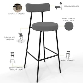 Amplamente moderna, dispondo de muito realce e design singular, a Banqueta Alta Bar Cozinha Sala De Jantar Estrutura Em Aço Milão L02 Suede Cinza - Lyam Decor vem com a personalidade e elegância que sua decoração merece! Estruturada em aço carbono, contrasta lindamente com o encosto e assento estofados, cabe mencionar ainda seu revestimento em Linho, é confeccionada por materiais de excelente qualidade, extremamente resistentes e aconchegantes.