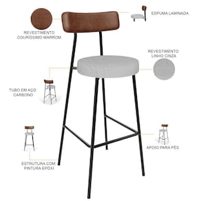 Amplamente moderna, dispondo de muito realce e design singular, a Banqueta Alta Bar Cozinha Sala De Jantar Aço Milão L02 Couríssimo Marrom Linho Cinza - Lyam Decor vem com a personalidade e elegância que sua decoração merece! Estruturada em aço carbono, contrasta lindamente com o encosto e assento estofados, cabe mencionar ainda o revestimento do seu encosto em Couríssimo e do assento em Linho, é confeccionada por materiais de excelente qualidade, extremamente resistentes e aconchegantes.