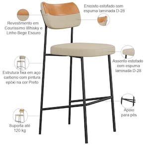 Para você que busca conforto, realce e praticidade, a Banqueta Alta Estofada Elira vai superar todas as suas expectativas! Garante muita comodidade e otimiza o espaço, além de harmonizar com seu estilo decorativo facilmente, podendo ser utilizada em bancadas, cozinha americana, espaço gourmet ou home bar, trazendo um toque especial em sua decoração. Sua proposta de design suavizará seu ambiente sem passar despercebida oferecendo mais leveza e receptividade ao seu lar. Estruturada em aço carbono, contrasta lindamente com o encosto e assento estofados que são extremamente confortáveis, resistentes e aconchegantes. Você merece esta incrível combinação em sua casa, adquira já a sua!