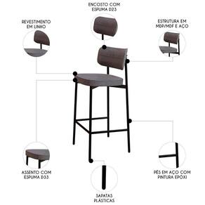 O revestimento em linho oferece um toque sofisticado ao kit de banquetas, enquanto o assento em espuma D33 proporciona um conforto superior, adequado para longos períodos de uso. O encosto curvado com espuma D23, complementa a experiência de conforto e estabilidade. Produzida com MDF/MDP no assento e encosto, a banqueta garante robustez e resistência. A estrutura em aço com pintura epóxi da Banqueta Para Bancada assegura durabilidade, tornando-a ideal para ambientes dinâmicos, como Cozinhas, bares e áreas gourmet. Sua combinação de design moderno e materiais de alta qualidade faz da Banqueta Cozinha uma excelente escolha para quem busca praticidade, estilo e longevidade em seus móveis.