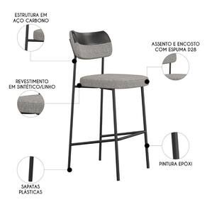 Banqueta Alta Bar Estofada Kit 2 Milli Linho Cinza/Preto A14 - Mpozenato