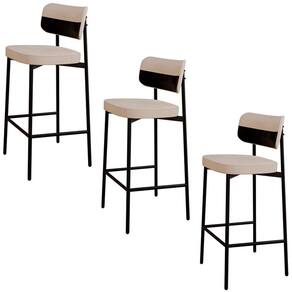 A Banqueta Alta Bar Estofada Kit 3 Ella M25 Linho Areia/Sintético Preto, da Mpozenato é uma peça de design contemporâneo e funcional, pensada para agregar estilo e conforto a qualquer ambiente.