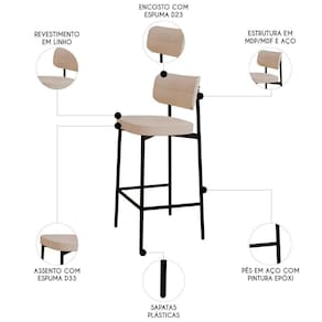 Seu revestimento em linho oferece um toque sofisticado, enquanto o assento em espuma D33 proporciona um conforto superior, adequado para longos períodos de uso. O encosto curvado com espuma D23, complementa a experiência de conforto e estabilidade. Produzida com MDF/MDP no assento e encosto, a banqueta garante robustez e resistência. A estrutura em aço com pintura epóxi da Banqueta Para Bancada assegura durabilidade, tornando-a ideal para ambientes dinâmicos, como Cozinhas, bares e áreas gourmet. Sua combinação de design moderno e materiais de alta qualidade faz da Banqueta Cozinha uma excelente escolha para quem busca praticidade, estilo e longevidade em seus móveis.