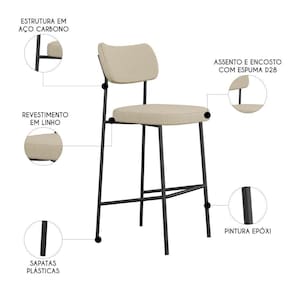 Banqueta Alta Bar Estofada Kit 6 Milli Linho Areia A14 - Mpozenato