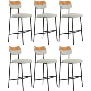 Banqueta Alta Bar Estofada Kit 6 Milli Linho Caramelo/Cinza A14 - Mpozenato
