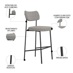 Banqueta Alta Bar Estofada Kit 8 Milli Linho Cinza A14 - Mpozenato