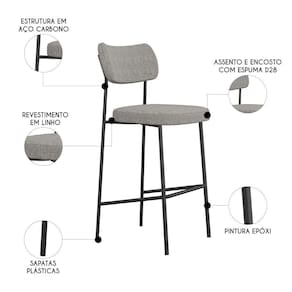 Banqueta Alta Bar Estofada Milli Linho Cinza A14 - Mpozenato