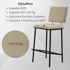 Banqueta Alta Base Em Aço Preto F109, uma peça com design marcante, confortável e resistente, que deixará seu ambiente muito mais elegante. Estrutura em Aço Carbono, com pintura em acabamento Epóxi (Fosco) e MDF. Composta por encosto e assento em MDF estofados com espuma D-28 de altíssima qualidade e procedência, revestimento em tecido Linho, e conta com base de Aço Carbono Preto. Suporta até 120 Kg. Desenvolvido para você que procura comodidade e bem-estar em um único produto. Este móvel chegará na sua casa separado em 01 volume.