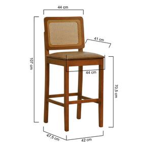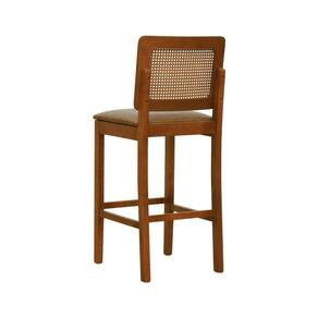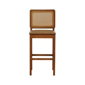 Banqueta Alta Bistrô Lyon Encosto Telinha Amêndoa Madeira Maciça Assento Estofado - Amêndoa Corano Marrom Mescla -