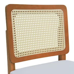 - Materiais: Estrutura em madeira de eucalipto maciço, com assento estofado, espuma D26 e tecido, encosto anatômico com telinha sextavada aplicada