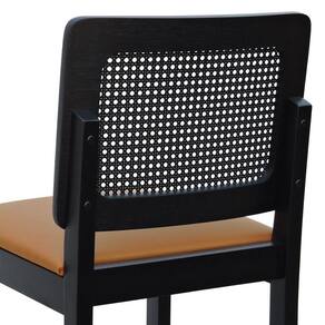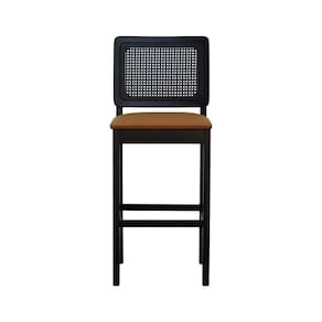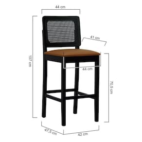 Banqueta Alta Bistrô Madeira Maciça Lyon Assento Estofado Encosto Telinha - Preto Corano Caramelo