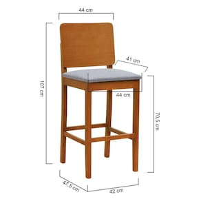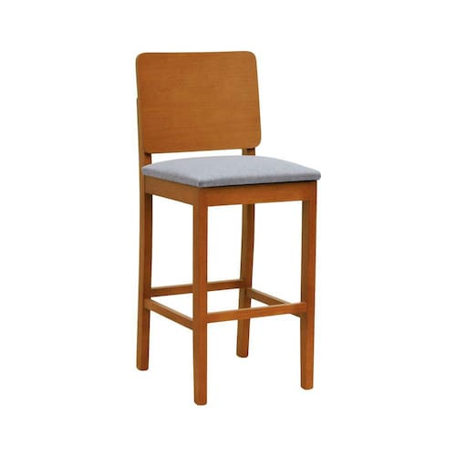 Banqueta Alta Bistrô Quéops Madeira Maciça Encosto Anatômico - Amêndoa Assento Estofado Linho Cinza Mescla Impermeável -