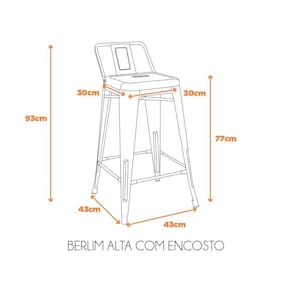 Baseada no design industrial, a banqueta Berlim Alta com Encosto é ideal para ambientes comerciais, como bares e restaurantes. Fabricada em aço com pintura automotiva, é o modelo ideal para você que procura resistência e praticidade para o seu ambiente. Acabamento da Estrutura: Pintura Altura do assento até o chão: 77 Altura Regulável: Não Ambiente Principal: Cozinha Complexidade da Montagem: Baixa: pode ser montado por uma pessoa sozinha Cor: Preto Cor do Produto: Preto Dobrável: Não Escala de Brilho: Semi-Brilho Itens Inclusos: 1 Banqueta, Kit Ferragens e Manual de Montagem Linha ou Coleção: Berlim Manual de Montagem e Instalação: https://cdn2.madeiramadeira.com.br/atributo/fratini/1166348-manual-de-montagem-banqueta-berlim-com-encosto.pdf Material do Assento: Aço Material do Encosto: Aço Necessita Montagem: Sim Origem do Produto: Importado Peso: 5.5 Possui Almofada no Assento: Não Possui Apoio Para os Pés: Sim Possui Encosto: Sim Possui Rodízio: Não Recomendações de Uso, Manutenção e Limpeza: Pano úmido Sistema de Montagem: Estrutura da Banqueta Completa + Encosto / Kit de Parafusos + Chave de Parafusos Tipo de Assento: Fixo Tipo de Encosto: Fixo