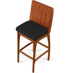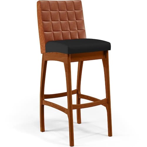 ndo muita excelência, a Banqueta Alta Para Cozinha Sala De Jantar Fixa Mila B04 Couríssimo Camel Corano Preto - Lyam Decor é o complemento que faltava para deixar sua casa ainda mais extraordinária. Seu encosto com costura em padrão quadriculado e assento estofados, centralizam em si uma graciosidade estonteante, sem perder todo o conforto. A estrutura em madeira, na cor nozes, também é digna de notoriedade, por imprimir bastante personalidade a sua decoração. Vale ressaltar ainda, o apoio para os pés que garante maior à mesma.