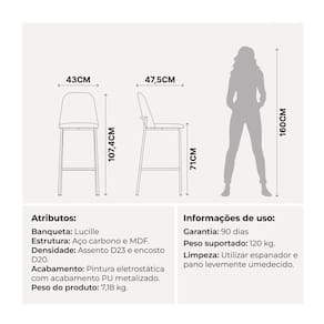 A Banqueta Lucille combina design contemporâneo e funcionalidade para transformar seus espaços com charme e conforto. Com estrutura em aço-carbono de alta resistência e acabamento em pintura eletrostática, oferece durabilidade e um visual sofisticado para cozinhas, bancadas e áreas gourmet.