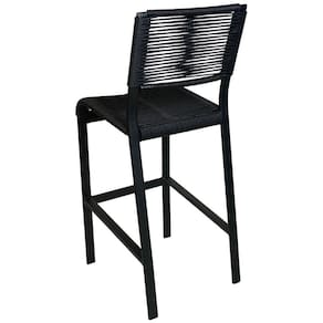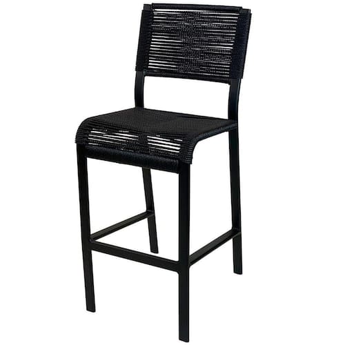 A banqueta IBIZA é produzida em alumínio tubo oblongo com reforços interno, com pintura eletro estática (epóxi) de alta qualidade e revestida com corda sintética (Coex) com proteção UV, nos pés são utilizadas sapatinhas de tecnil nylon que não danifica seu porcelanato e tem uma maior resistência a pisos ásperos.