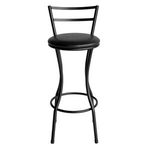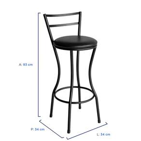 Estrutura de qualidade A banqueta possui estrutura de ferro com encosto fixo e assento revestido em courino. As bases de apoio são reforçadas e você pode colocar os pés na estrutura inferior em formato redondo para ter ainda mais conforto.