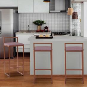 A Banqueta Alta Decorativa Pietra Em Suede Com Armação Dourada é uma banqueta