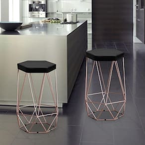 A Banqueta Alta Decorativa Rubi Estofada Com Armação Bronze é uma banqueta