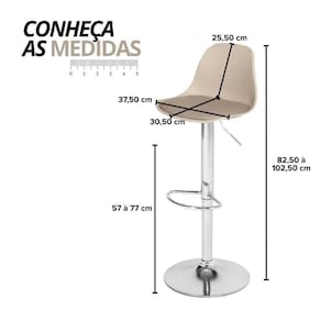 Com assento estofado, regulagem de altura a gás e base giratória em aço cromado, ela se adapta a qualquer bancada e usuário.