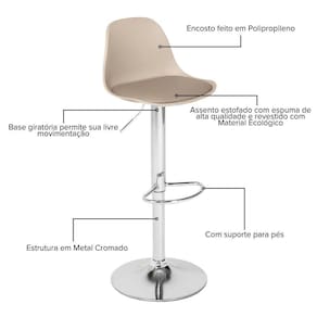 Seu encosto ergonômico e o apoio para os pés garantem bem-estar, enquanto o design minimalista e as diversas opções de cores permitem que ela harmonize com cozinhas, áreas gourmet e bares.