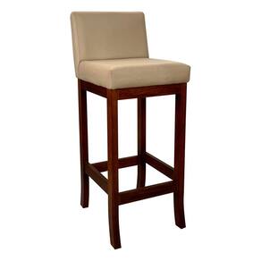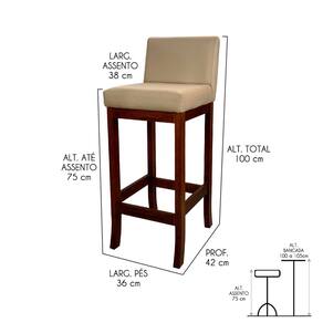 Banqueta Alta Estofada em Madeira Maciça Castanho Melody Suede Bege