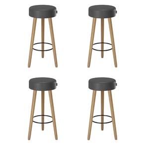 Banqueta Alta Estofada Pés Palito Kit 4 Hong Sintético Preto S08 - Mpozenato