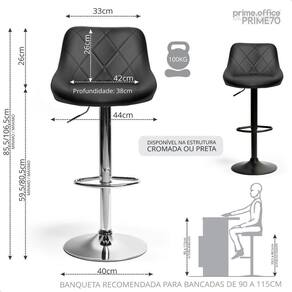 - Material da Estrutura da Banqueta: Estrutura em Metal Cromado