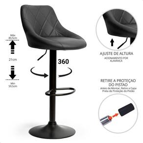 Banqueta Alta Giratória Milano Cozinha Americana Bar Kit 03 Preto - P070