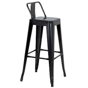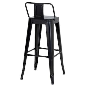 Banqueta alta Iron Tolix com encosto 76 cm acabamento texturizado Preto Preto -