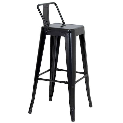 • 1 - Banqueta alta Iron Tolix com encosto 76 cm acabamento texturizado Preto