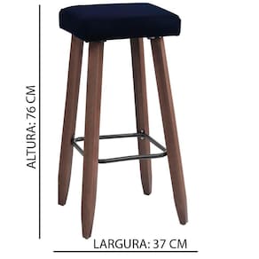 Banqueta Alta Kiara Estofada Em Suede Com Pés Em Madeira