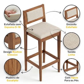Produzida com estrutura em madeira, a Banqueta Lenna oferece excelente estabilidade e durabilidade no uso diário. O assento e encosto estofados proporcionam maior conforto ao sentar, tornando a experiência mais agradável em momentos de refeição, conversas ou encontros em bancada.