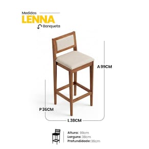 Banqueta Alta Lenna 99cm em Madeira com Encosto Estofado é a escolha perfeita para quem busca conforto, resistência e um visual elegante para bancadas e espaços gourmet. Com design equilibrado e linhas atemporais, ela valoriza o ambiente e se adapta facilmente a diferentes estilos de decoração.