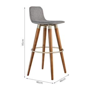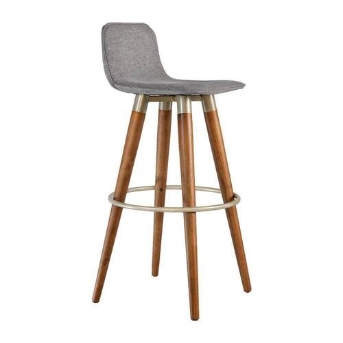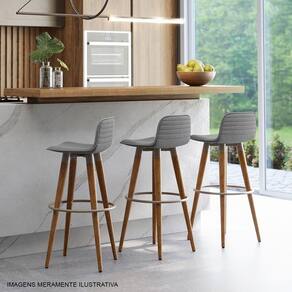 Banqueta Alta Luxo Versatil Aço Champanhe Linho Cinza Base Carvalho - Cor: Preto