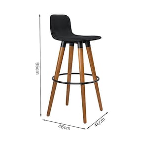 Banqueta Alta Luxo Versatil Aço Preto Linho Preto Base Carvalho - Cor: Preto