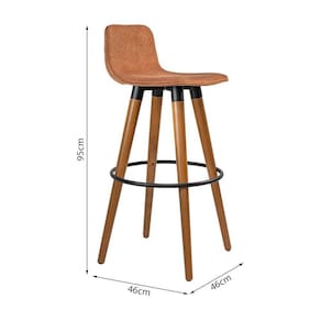Banqueta Alta Luxo Versatil Aço Preto Linho Terracota Base Carvalho - Cor: Preto