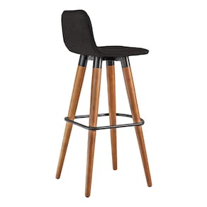 Banqueta Alta Luxo Linea Aço Preto Linho Preto Base Carvalho