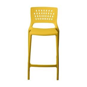 Banqueta Alta Para Bancada E Cozinha Amarela Empilhável Marte Em Polipropileno Acrilys