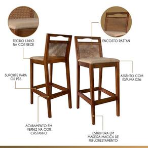 A Banqueta Valência em madeira maciça com acabamento em verniz combina estilo e conforto para sua cozinha. Assento em espuma D26, encosto em rattan e revestimento em linho bege completam o design atemporal. Perfeita para bancadas/mesas de 100/105cm, a Valência eleva o nível de requinte do seu ambiente. Invista em qualidade e leve elegância para sua casa! CARACTERÍTICAS TÉCNICAS:- Produzido em Madeira Maciça;- Acabamento em Verniz na cor Castanho;- Assento Preenchido com Espuma D26; - Encosto com Revestimento em Rattan com Fibra Sintética;- Revestimento em Linho na cor Bege.*Indicada para Bancadas/Mesas com Alt. 100/105cm.