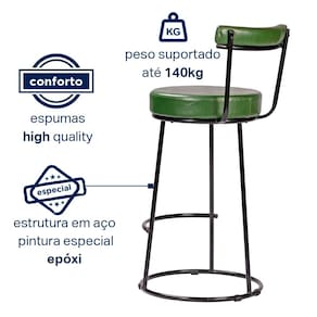 A base em aço carbono com pintura epóxi adiciona robustez e resistência, suportando até 140 kg, enquanto as sapatas anti risco preservam o piso. Além disso, o arco para apoio dos pés e o encosto em aço oferecem maior conforto durante o uso, ideal para momentos de convivência.