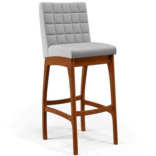 ndo muita excelência, a Banqueta Alta Para Cozinha Sala de Jantar Fixa Mila B04 Linho Cinza - Lyam Decor é o complemento que faltava para deixar sua casa ainda mais extraordinária. Seu encosto com costura em padrão quadriculado e assento estofados, centralizam em si uma graciosidade estonteante, sem perder todo o seu conforto. A estrutura em madeira, na cor nozes, também é digna de notoriedade, por imprimir bastante personalidade a sua decoração. Vale ressaltar ainda, o apoio para os pés que garante maior segurança à mesma.