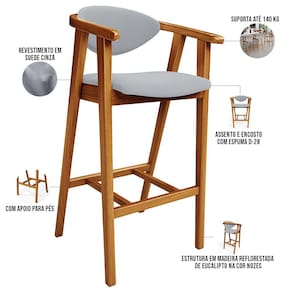 A melhor escolha para os momentos de confraternização no aconchego da sua casa, acaba de chegar! A Banqueta Alta Para Cozinha Bancada Bar Sala de Jantar Fixa Cecília L02 Suede Cinza - Lyam vem com a personalidade e elegância que sua decoração merece! É ideal desde refeições rápidas, até um Happy Hour com os amigos, família. Seu design único valoriza o ambiente, sem deixar pra trás a beleza e qualidade! Para deixar a sua área gourmet mais aconchegante, ela possui assento e encosto estofados, confeccionados com materiais de excelente qualidade, e extremamente resistentes.