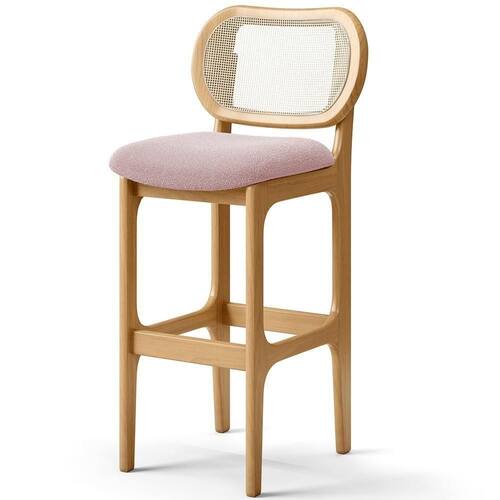 Banqueta Alta Para Cozinha Bancada Sala Tela Betta Fixa L02 Bouclê Rosê - Lyam