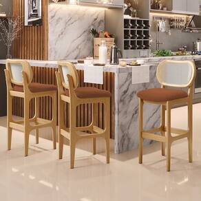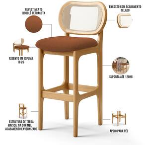 Banqueta Alta Para Cozinha Bancada Sala Tela Betta Fixa L02 Bouclê Terracota - Lyam - Laranja