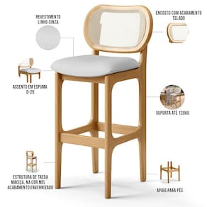 Amplamente sofisticada, a Banqueta Betta irá agregar ainda mais valor em sua decoração!! Sendo capaz de compor muito bem o ambiente, é produzida com materiais de excelente qualidade, a resistente estrutura em madeira de Taeda, na cor Mel, conta com apoio para os pés (que garante maior segurança), além do assento e encosto estofados super confortáveis e convidativos, que são revestidos em tecido Linho, extremamente elegante. Podendo ser disposta em bancada, cozinha americana, espaço gourmet ou home bar, as possibilidades de combinação são infinitas, o que a torna perfeita para receber família e amigos sempre de forma agradável e aconchegante, sem perder a sobriedade e requinte que possui. Você e seu lar merecem, adquira já a sua!!