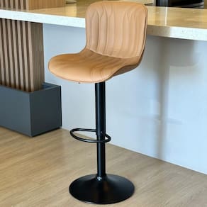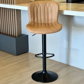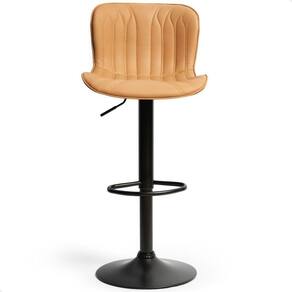 Banqueta Alta Para Cozinha Estofada Giratória Encosto Bar Caramelo - P050